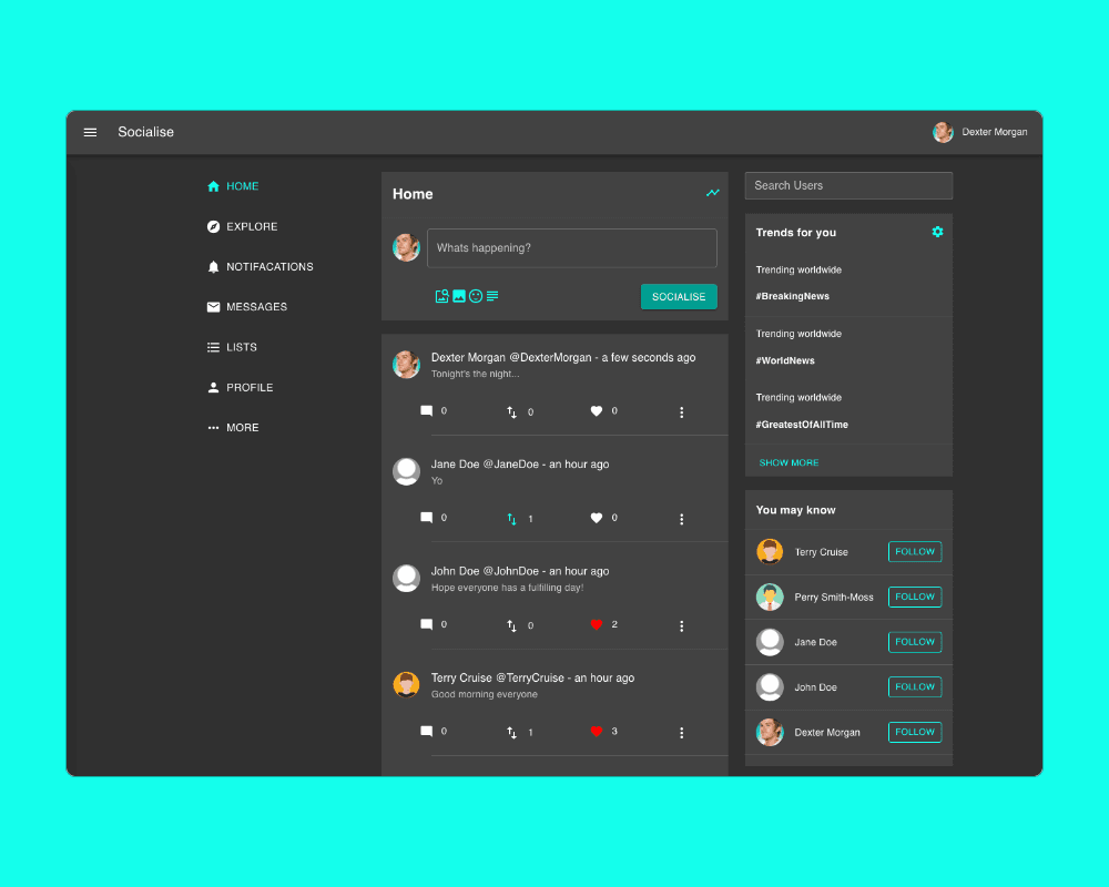 React.jsNode.jsGraphQLA social media platform where users can share what they're doing and chat with others.